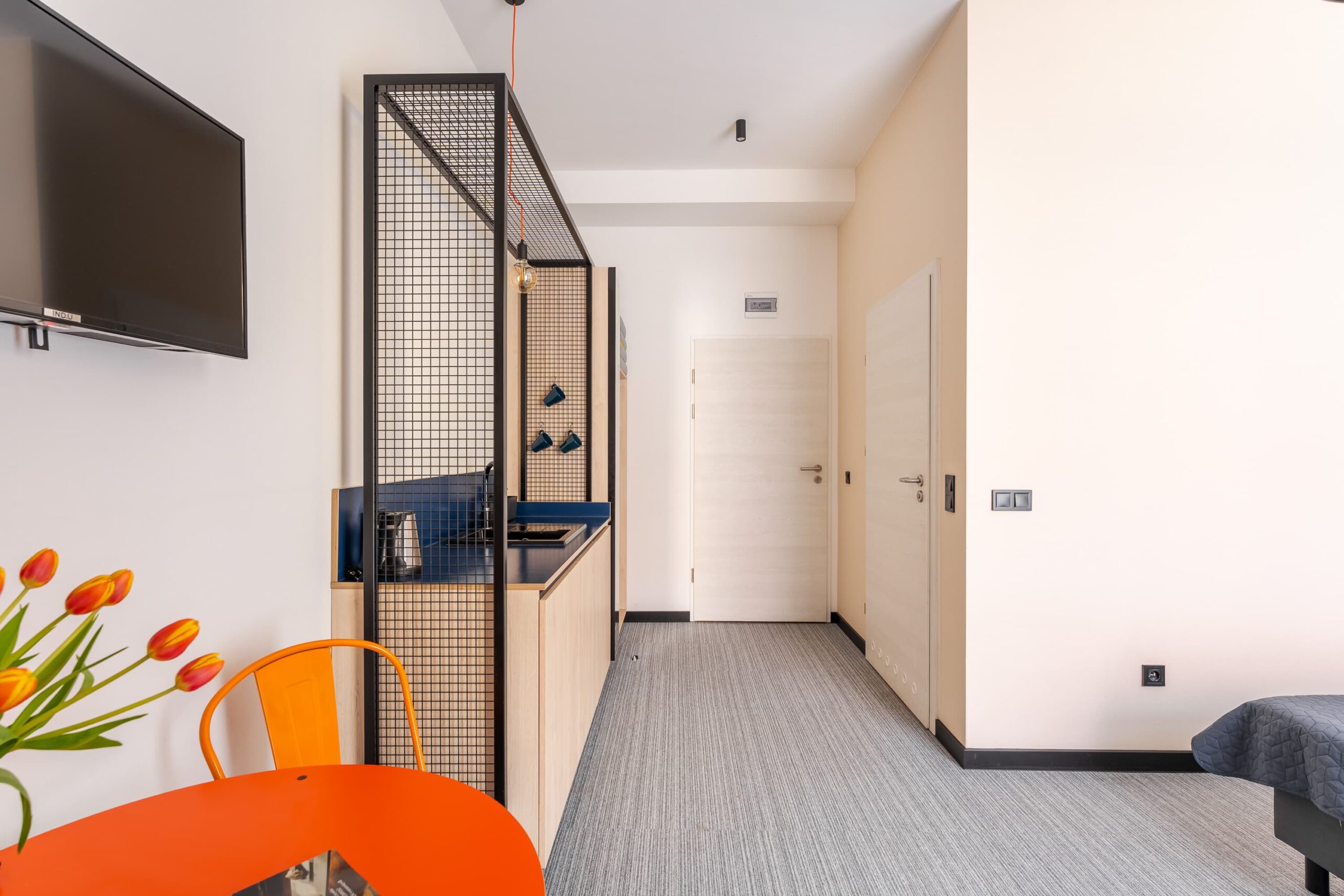 W pokoju znajduje się lodówka, aneks kuchenny, telewizor z płaskim ekranem i dostępem do telewizji kablowej oraz łazienka z prysznicem. Apartament posiada bardzo wygodne dwuosobowe łóżko z możliwością rozłączenia na dwa łóżka jednoosobowe.